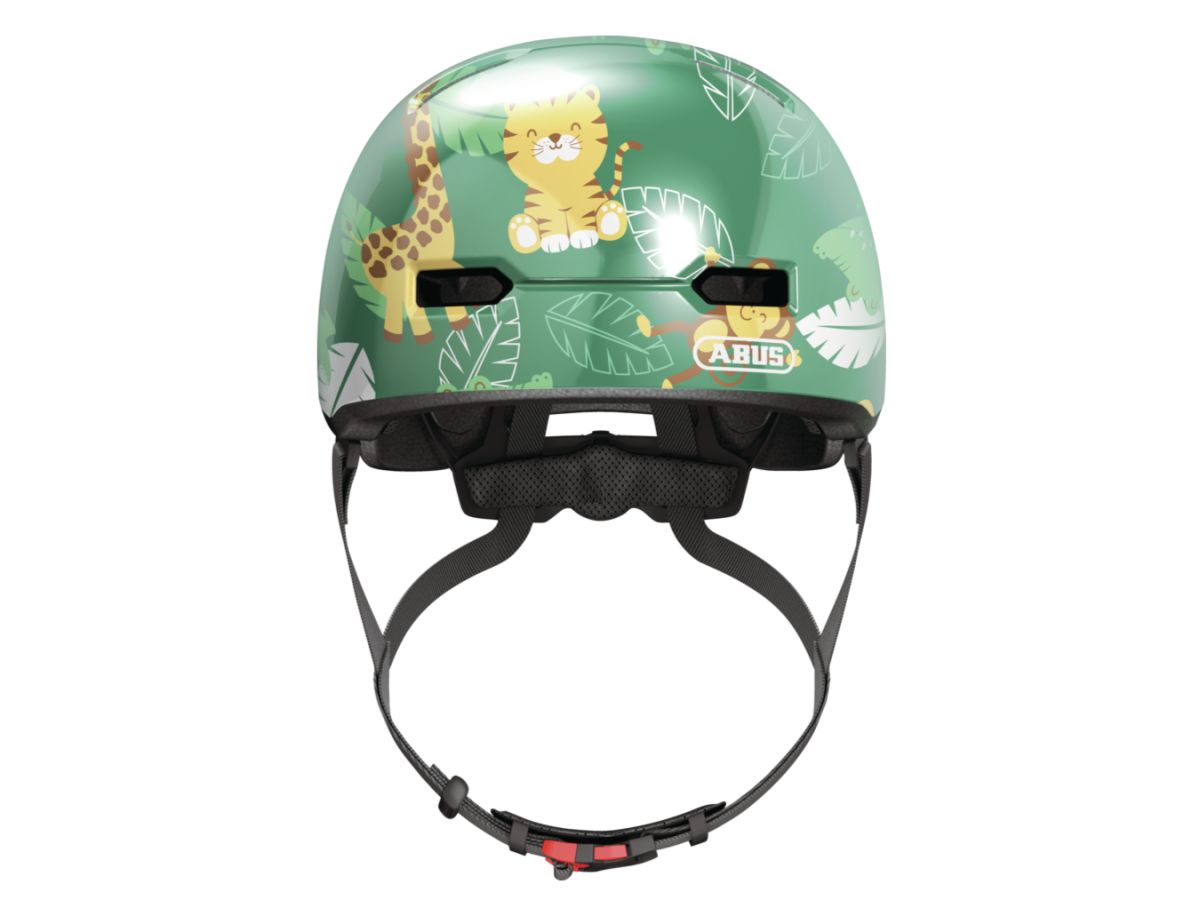 Dětská přilba Abus Skurb Kid s motivem džungle. Jedná se o bezpečnou a kvalitní volbu pro ochranu vašeho dítěte néjen při cyklistice.