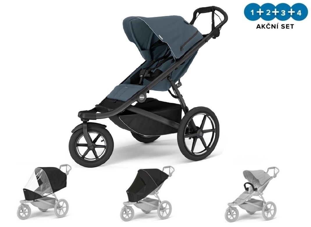 Sportovní kočárek Thule Urban Glide 3 Dark Slate s magnetickou sponou ve výhodném setu s pláštěnkou, moskytiérou a dvěma madly.