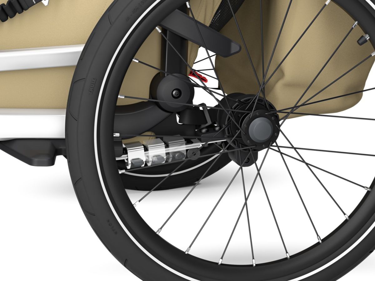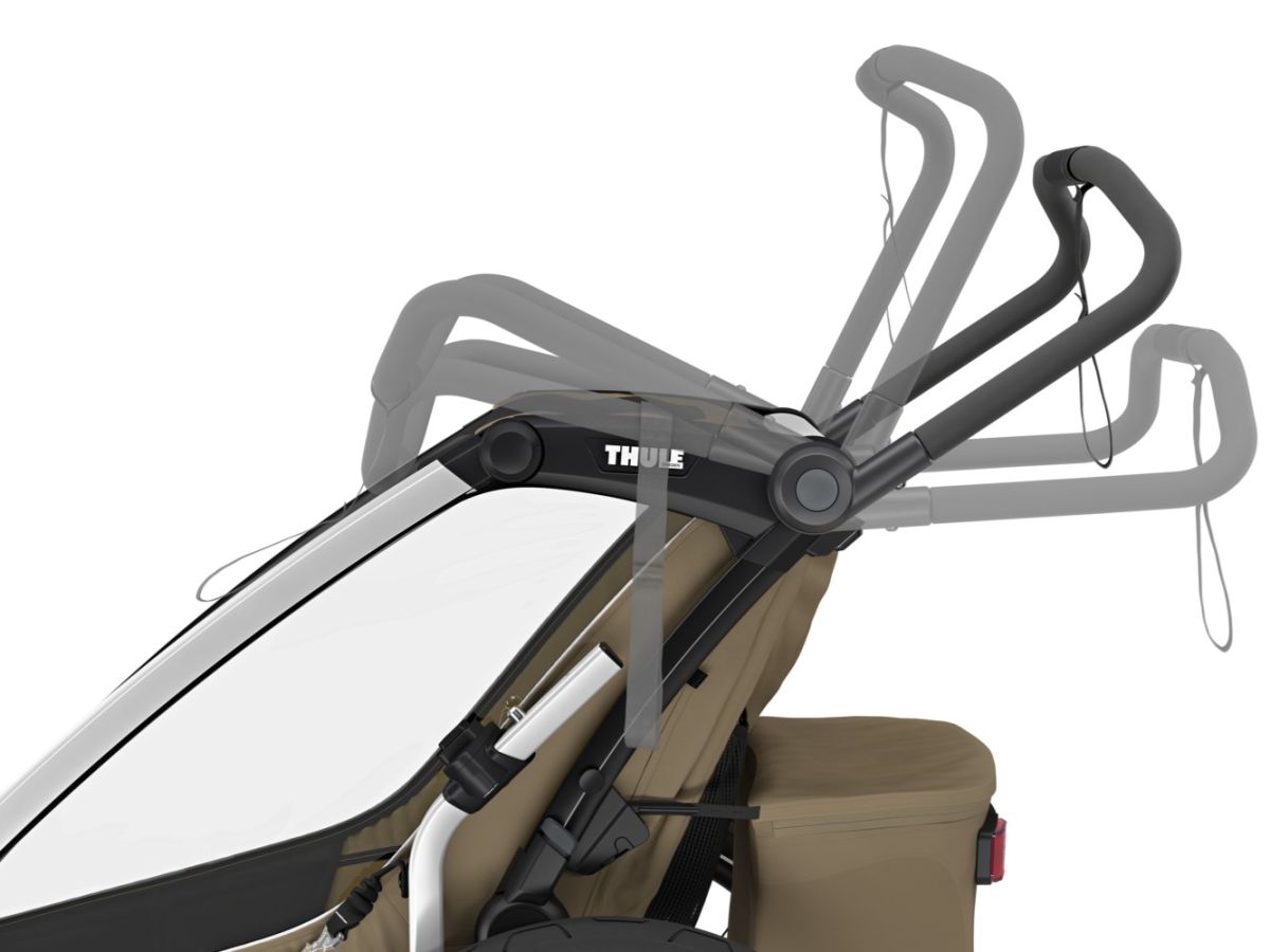 Jako rodič oceníte praktické detaily, jako je jednoduché složení jednou rukou, nastavitelné ergonomické madlo a možnost připojení kola jednou rukou. Velký nákladní koš poskytuje dostatek místa pro potřebné vybavení a v případě běhu ho můžete snadno sklopit. Díky systému Click n’ Store můžete pohodlně uskladnit sadu na běhání a cyklistiku.