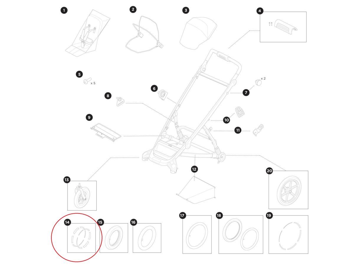 Náhradní reflexní samolepky předního kola pro kočárek Thule Urban Glide 4- wheel 1500055100.
