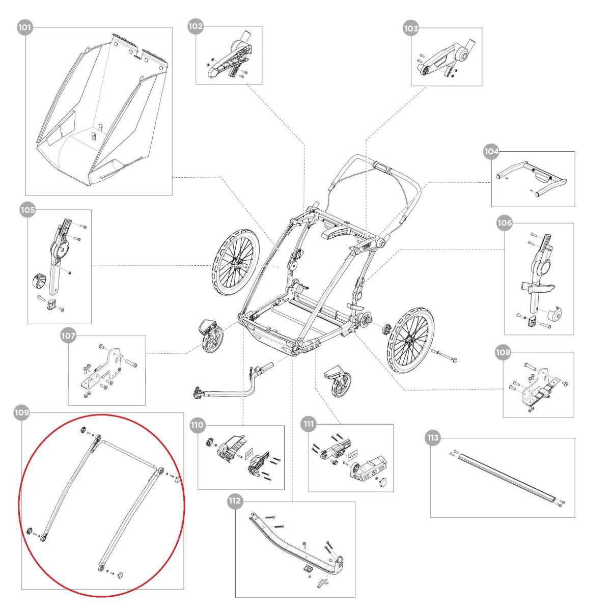 Náhradní díl pro vozík Thule - Frame front upper Aluminium 55236.