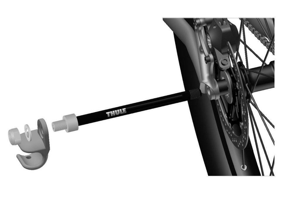 Adaptér Thule pro kola s 12mm zadní osou Maxle k připojení vozíku Thule za kolo ke kolu, instalace je snadná a rychlá