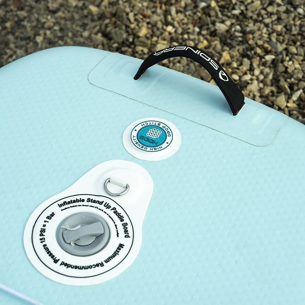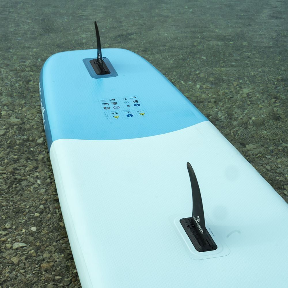 Moderní technologie High Density Dropstitch zajišťuje vysokou pevnost, dlouhou životnost a optimální tuhost při tlaku až 15 PSI, přičemž paddleboard zůstává dobře ovladatelný a snadno přenosný. Nosnost až 250 kg umožňuje bezstarostné pádlování bez kompromisů a dává vám svobodu vzít s sebou vše potřebné. Velká plocha paluby poskytuje dostatek místa pro stání, sezení i převoz výbavy, zatímco dvě odnímatelné ploutve se starají o lepší vedení směru a klidné chování na hladině.