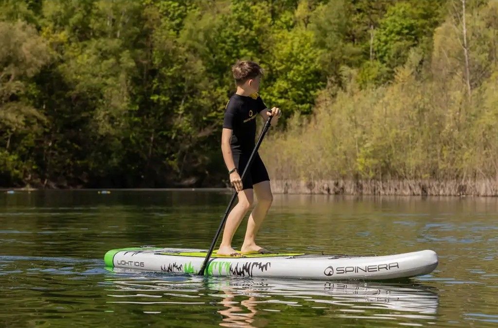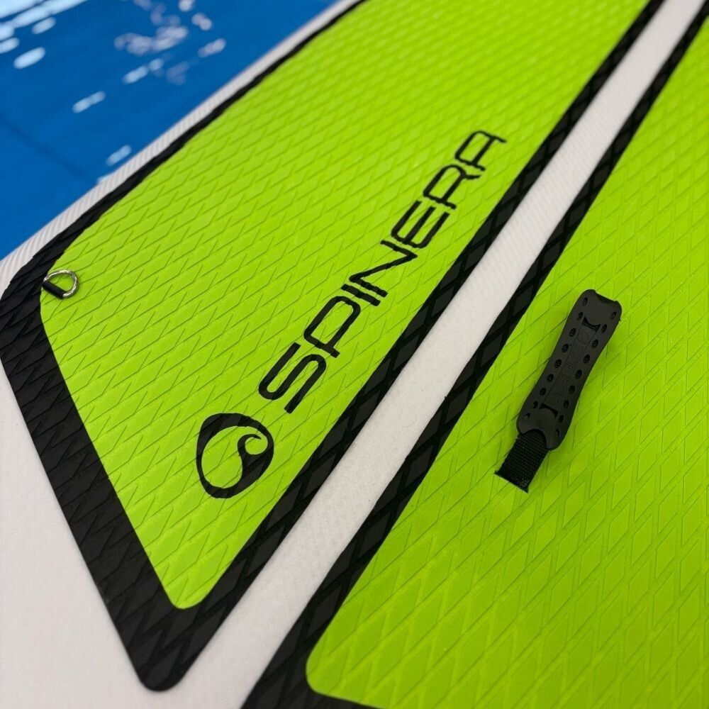 Čtyři integrované D-kroužky dávají možnost rychle připojit kajakovou sedačku a změnit paddleboard na pohodlný kajak pro sezení, což výrazně rozšiřuje možnosti využití. O stabilní držení směru se starají dvě zadní ploutve se systémem Slide-in, které lze nasadit během okamžiku bez použití nářadí. SPINERA Light 10'6'' ULT je všestranný paddleboard pro rekreační pádlování, cestování i aktivní odpočinek, který spojuje extrémně nízkou hmotnost, vysoký komfort a praktickou výbavu v jednom kompaktním balení.
