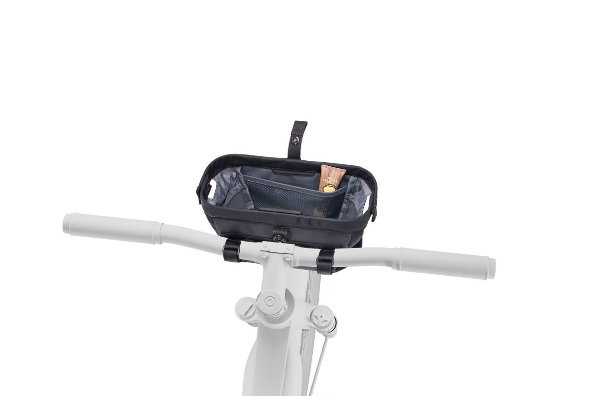 Nastavitelné popruhy na suchý zip umožňují snadnou instalaci na většinu typů řídítek. Praktickým bonusem je odnímatelné vnitřní pouzdro na cennosti, které lze použít samostatně jako malou tašku přes rameno. Vnitřní kapsa pomáhá udržet drobnosti přehledně uspořádané a reflexní lem zvyšuje vaši viditelnost a bezpečnost při jízdě za snížené viditelnosti.