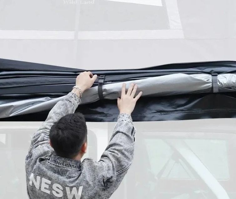Po otevření vytváří rozsáhlý zastíněný prostor o rozměrech 460 × 200 × 200 cm, který elegantně obepíná bok vozidla a poskytuje spolehlivou ochranu proti slunci, dešti i větru během celého roku. Její ovládání je natolik jednoduché, že ji dokáže rozložit jedna osoba během několika okamžiků.
