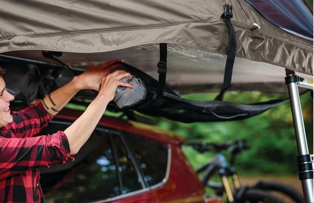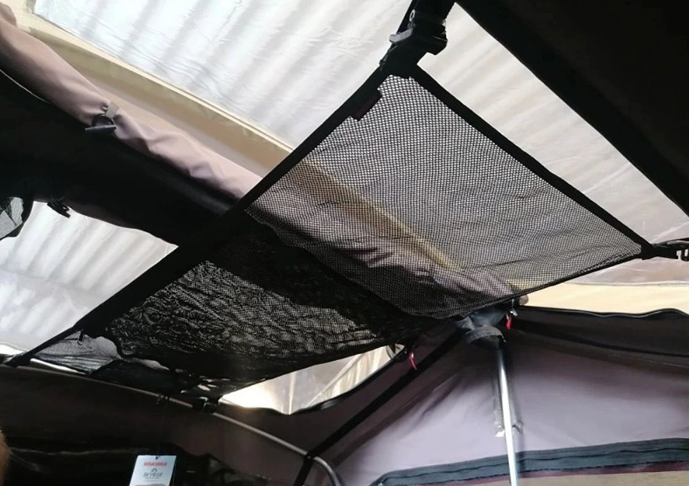 YAKIMA SkyRise SkyLoft představuje chytré řešení pro udržení pořádku ve střešním stanu i při kempování venku. Tato závěsná síťka nabízí prostorné úložiště o rozměrech 102 × 43 cm a dvě kapsy na zip pro bezpečné uložení drobných předmětů. Průhledný materiál usnadňuje okamžité nalezení potřebných věcí a přispívá k lepší přehlednosti v interiéru stanu.