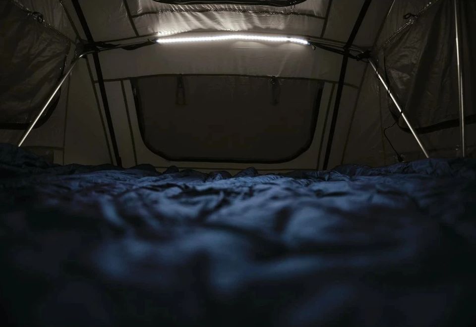 YAKIMA SkyRise SunBelt je chytrý LED pásek navržený tak, aby přinesl pohodlné a rovnoměrné osvětlení do střešního stanu Yakima SkyRise i jeho okolí. Odolné látkové pouzdro chrání světlo před poškozením a zároveň umožňuje jeho jednoduché uchycení díky univerzálním úchytům po celé délce 190 cm.