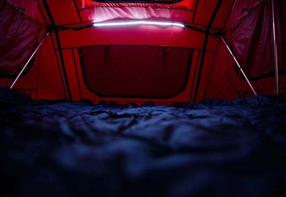 Díky flexibilní konstrukci se pásek snadno přizpůsobí tvaru stanu, přístřešku nebo jiného kempingového vybavení a zajistí příjemnou atmosféru pro večerní posezení, přípravu jídla nebo orientaci ve stanu.